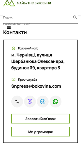 Створити сайт для громадської організації “Майбутнє Буковини”.